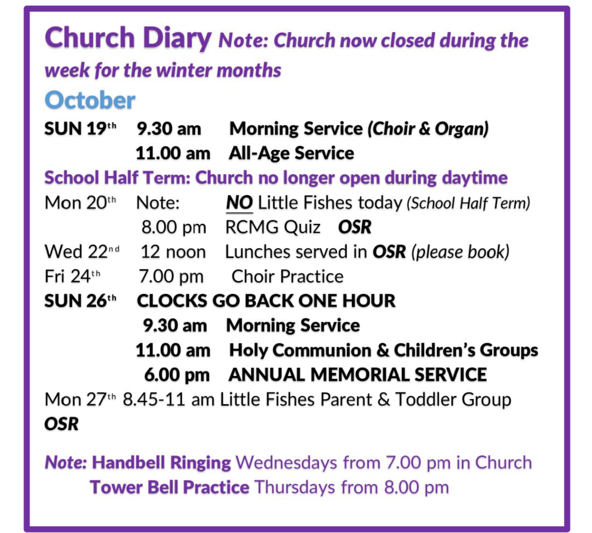 11.00am Informal Service with Music Group. Children's & Youth Work. No service 1st Sunday of every month.