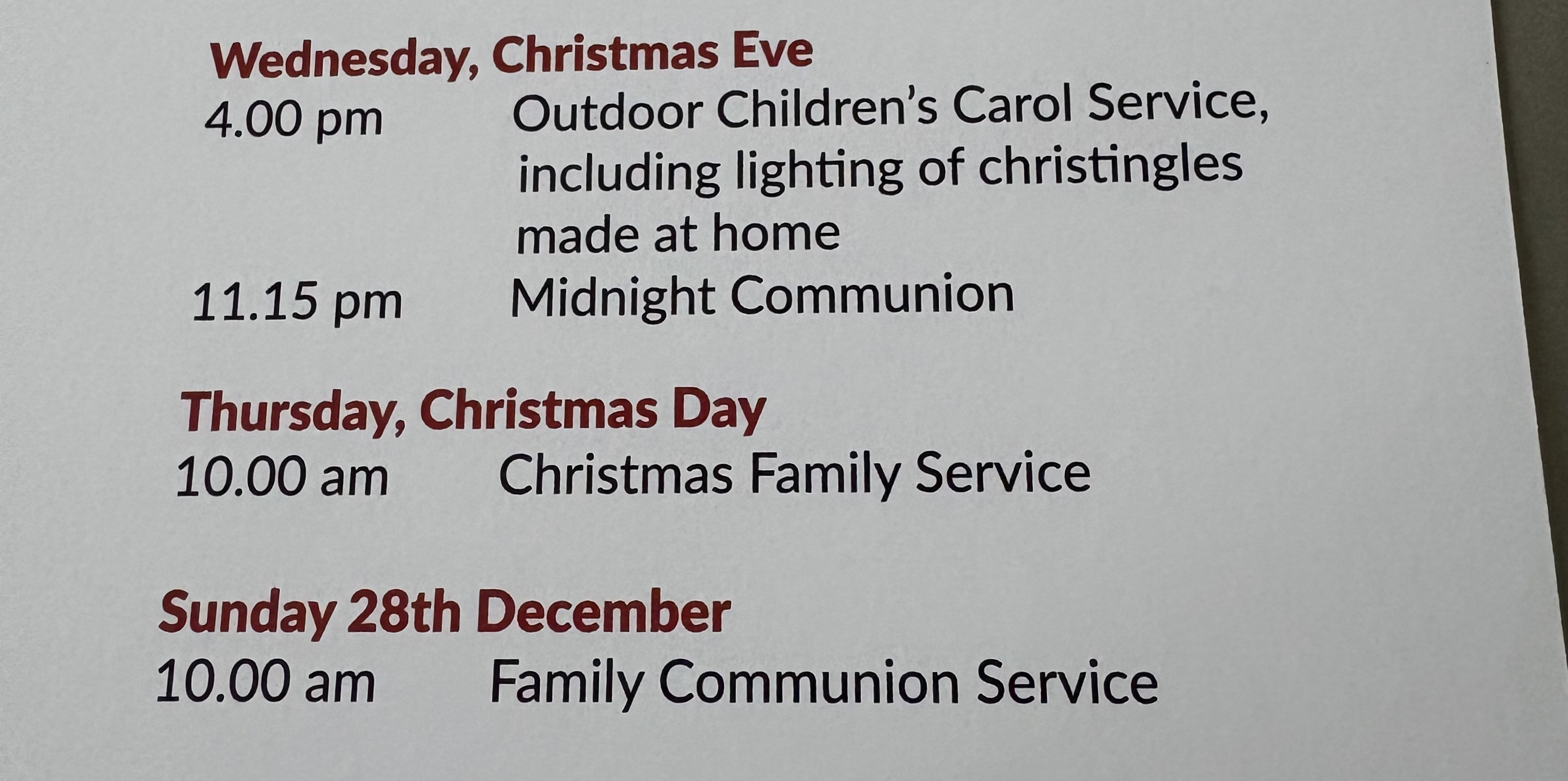 • Creche (0 months to 3 years). Children must be accompanied by their parent/grown-up at all times.  You will be able to hear the service in the creche.